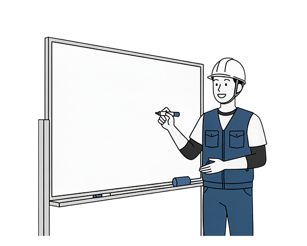 当日の作業内容や安全事項を確認します。必要な資材や工具を準備し、現場へ向かいます。
