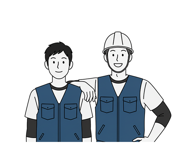 現場での施工作業を中心に、資材の運搬や準備、安全確保のための作業など、工事を進めるうえで必要な業務に携わります。経験を積むにつれて、現地確認、打ち合わせ、工程管理といった現場運営に関わる業務もお任せしていきます。